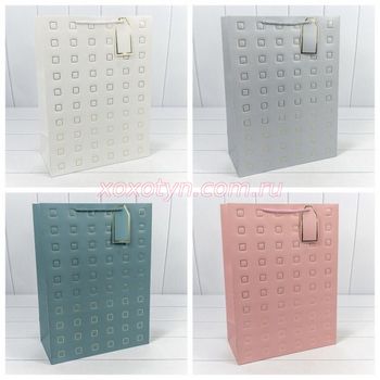 Пакет подарочный с тиснением "Квадратики" (микс) 31*42*15 210г 1/20 1/80 000881А