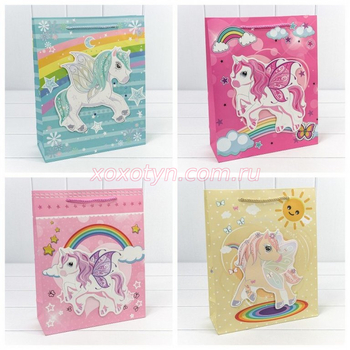 Пакет подарочный с 3D аппликацией "Единороги" (микс) 26*32*10 210г 1/20 1/240 000333С/кзг-3073/4561