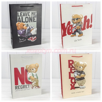 Пакет подарочный с тиснением "Мишки" (микс 109) 30*41,5*12 210г 1/20 1/80 000109А