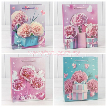 Пакет подарочный с 3D аппликацией "Гвоздики" (микс 260) 18*23*10 210г 1/20 1/360 000260Е