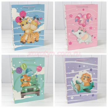 Пакет подарочный с 3D аппликацией "Детский" (микс 328) 30*41,5*12 210г 1/20 1/80 000328А